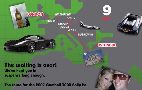 Megnzhetitek a 2007-es tervezet tvonalt a Gumball 3000-nek.